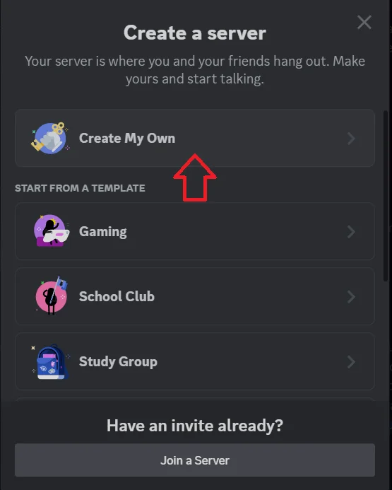 - Create a New Server: In Discord, click on the "+" icon in the sidebar to create a new server.