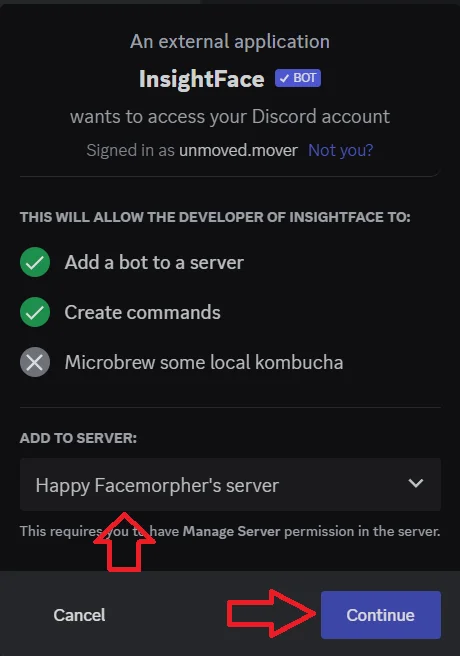- Bot Invitation: Use this invitation link: https://discord.com/api/oauth2/authorize?client_id=1090660574196674713&permissions=274877945856&scope=bot to invite the "InsightFaceSwap" bot to your server.