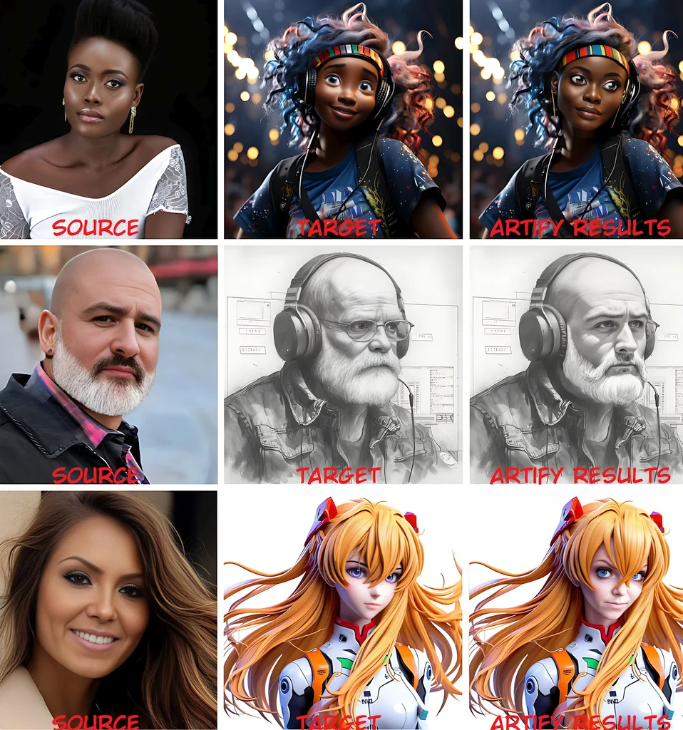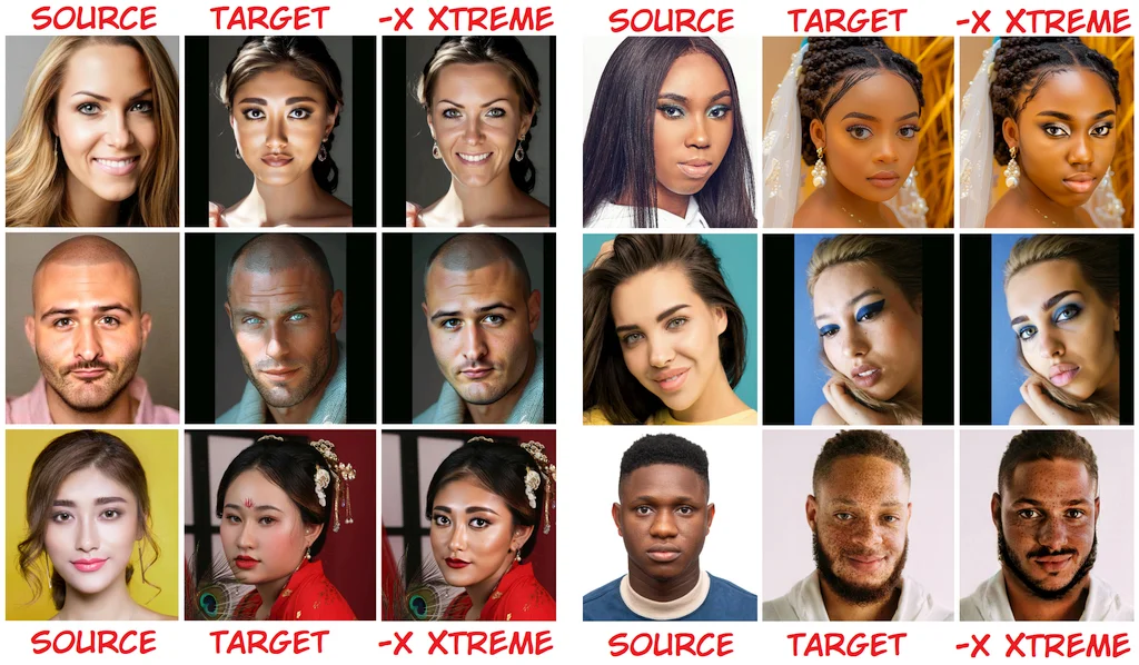 - Multi-Face Swapping: Swap up to 4 source faces onto up to 4 target faces in a single image for more complex compositions.
