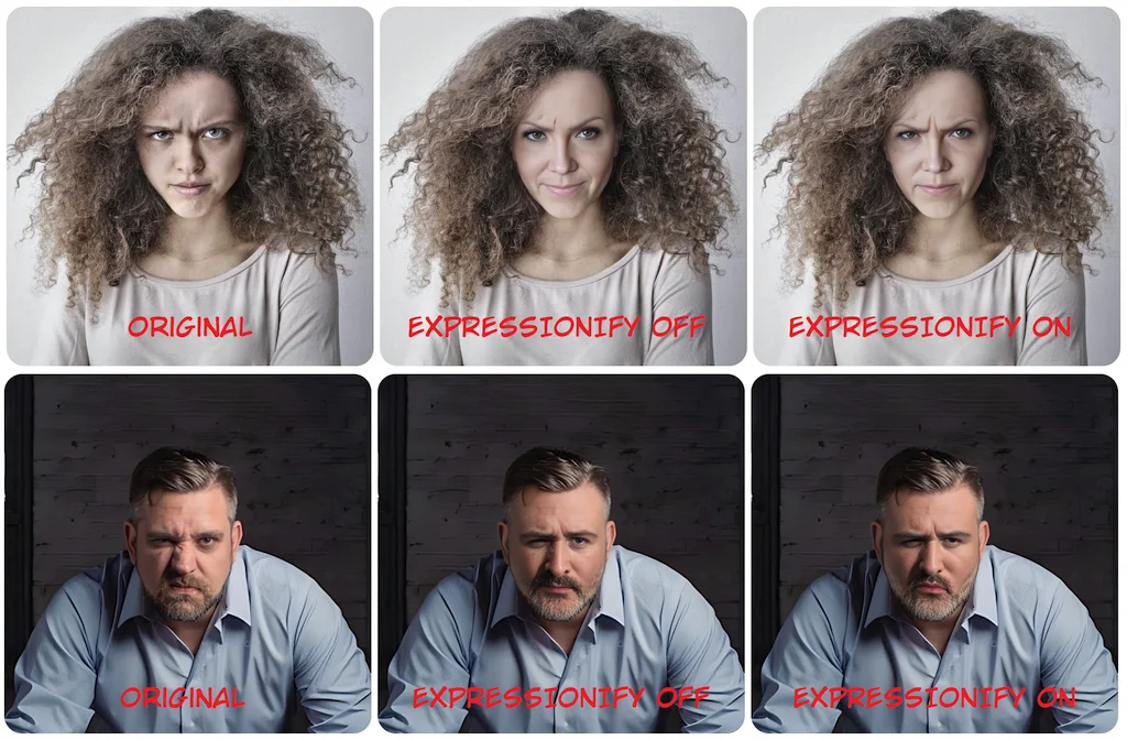 - Expressionify: Retain or enhance the target face’s expression.