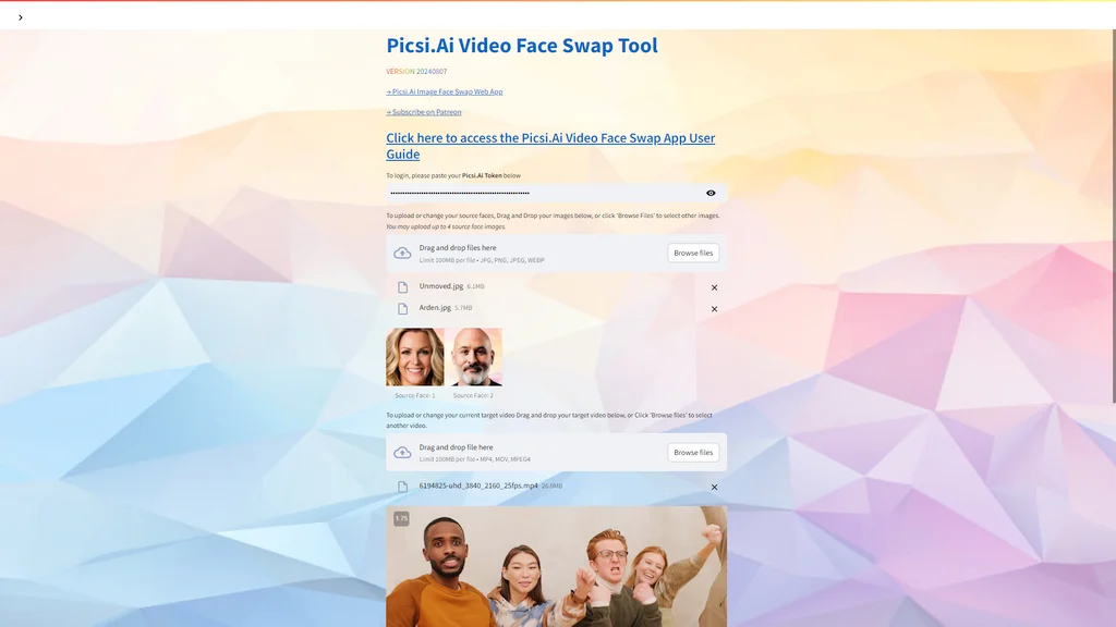 - Target Video Limit: 4 faces, MP4/MOV/MPEG4 formats, max 100MB.