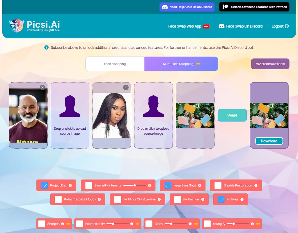- Multi-Face Swapping: Swap up to 4 faces in a single video—a feature exclusive to the web tool and unavailable on Discord.