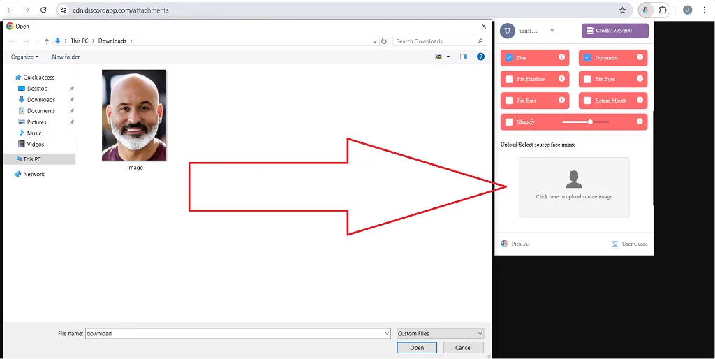 Selecting a Target Image: Generate a picture with MidJourney or manually upload any image featuring a human-like face to your private Discord server channel. Use Discord's '+' to upload your target image.